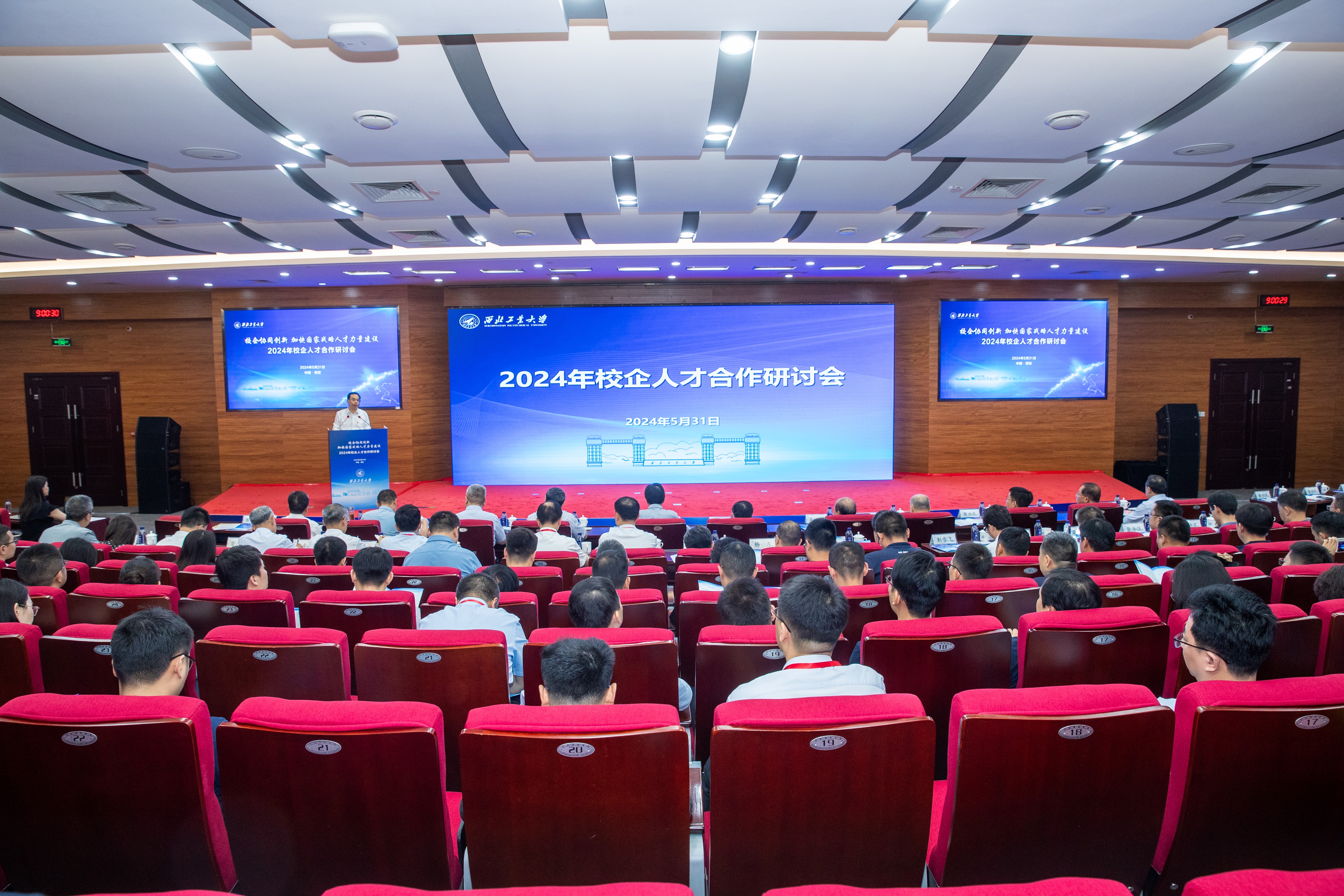 李言荣代表学校欢迎大家。他重点就两个方面进行了阐述:为什么现在我们要特别强调人才的校企合作,高校如何进一步深化与军工院所的人才合作。他说,当前我国科技自立自强,拔尖人才自主培养,教育、科技、人才三位一体发展,教育强国,国防现代化,新型工业化,新质生产力,等等,都说明了一点:那就是科技创新能力和创新人才在各个领域的决定性作用愈发凸显,这也是我国现阶段发展的最大卡点和堵点。我们说一切事业的发展都取决于人,特别是决定于人才的数量和质量。当前我国军工企业已进入创新驱动发展、科技引领未来的大发展时期,这对人才的渴求前所未有,与我们创建世界一流大学越来越相似,即都是高度依赖于人才队伍的建设,人才已成为了双方的刚需。近两年来校企双方互动越来越频繁,对抓人才的认识和措施越来越相近,所以我们的共同语言也越来越多。另一方面,企业是技术创新的主体,高校是科技创新的源头,双方共同的利益和共同的追求使得双方尽快取长补短的现实需求让校企走动越来越多,强强联合正当其时。他进一步强调,长期以来,西工大所形成的系统能力强、总师育人现象、成果转化“三项改革”等方面的特色优势,都得益于我们一直与军工单位的紧密合作、相互支持。他说,西工大毕业生扎根一线,形成了“愿意去、留得住、干得好”的传统,特别是近年来到国防科技工业领域就业比例连续超过40%,彰显了学校作为国防特色高校的担当,本次会议就是学校主动与产业部门和军工央企对接人才合作所迈出的重要一步,目的就是落实好党和国家对卓越工程技术人才培养的要求。他最后说,当前西工大正在着手解决两大问题:一是如何为国家培养更多的未来总师,这就要求我们要更加紧密的与军工单位一起有计划地为我们培养和锻炼更多的有工程技术背景的青年教师,我们已启动“百名优秀青年教师到企业兼任副总师”的项目,计划每年选派20位优秀青年才俊到军工企业参与型号研制,同时我们也要积极延揽聘请优秀的企业总师、副总师到高校来参加我们的未来总师培养;二是现在我们从工程系统里面梳理出来的“1到0”问题,非常需要与央企、军工企业、行业代表性企业一起来联合攻关,解决上下对齐、双向发力的问题。眼下比较好的抓手就是从校企联聘的重要人才开始。只有形成人才的双方共享、共赢和互动,校企人才合作才可持续、可推广、可复制,人才的作用才能最大化。