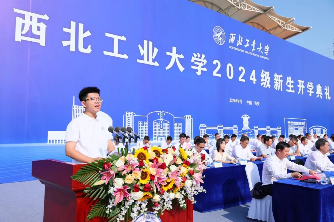教育实验学院/未来技术学院2024级本科生张瑞代表所有新生向热情帮助大家顺利入学的老师、学长们表示了衷心的感谢。他深情讲述了自己入学前对西工大的向往与憧憬,高中时他便被这所“硬核”但不失“温度”的大学深深吸引,“三航报国”的种子在他心里悄然生根发芽,于是将西工大作为自己最坚定的选择。如今如愿奔赴梦中的学术殿堂,他表示要用坚定的信念诠释矢志报国的精神底色,用有力的行动书写青春当“燃”的精彩华章,在西工大这热血的舞台上,探索更广阔的天地、成为更好的自己,开创炽热而灿烂的未来!