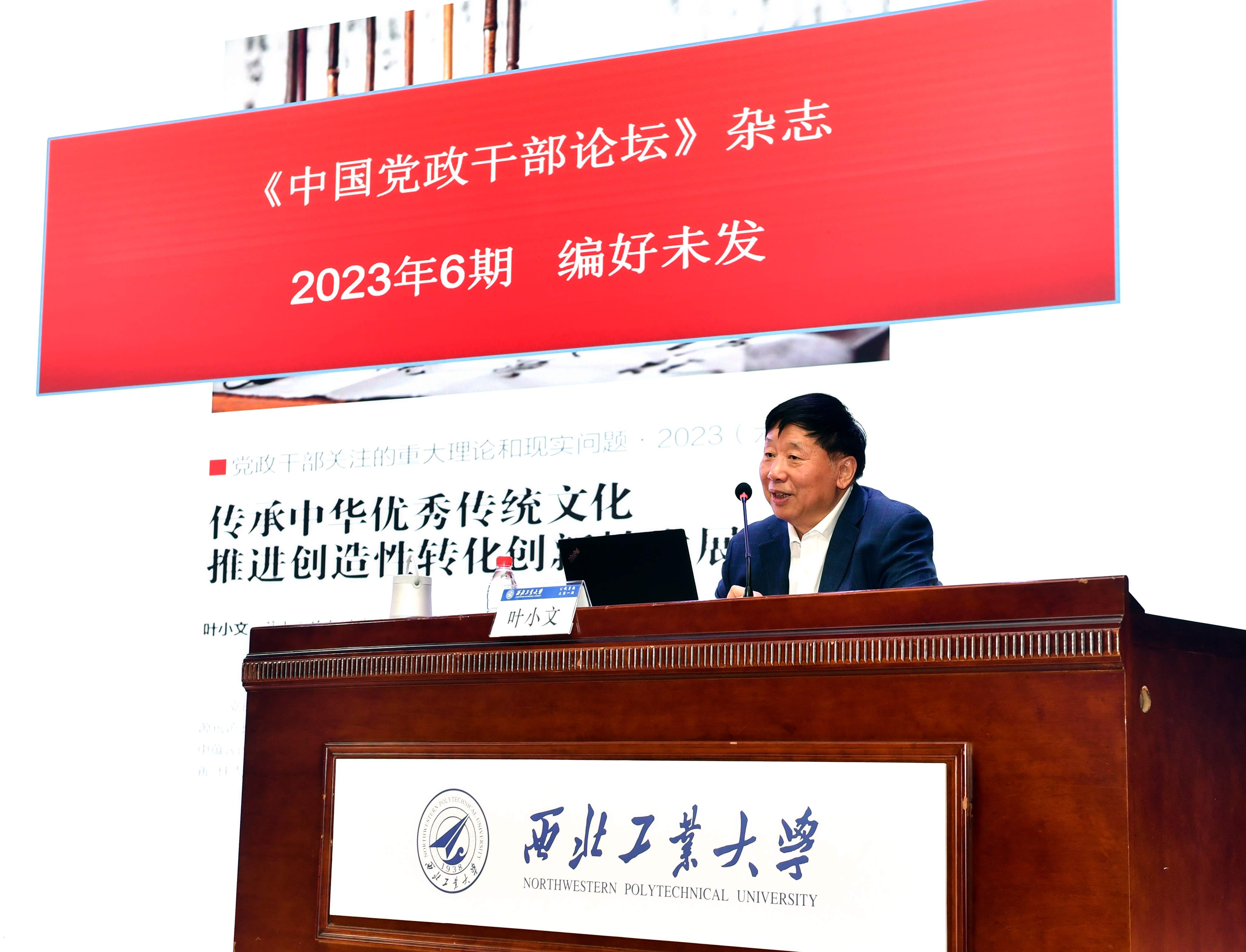 报告中,叶小文围绕学习贯彻习近平文化思想和习近平总书记在文化传承发展座谈会上的重要讲话精神,深刻阐释了坚持“两个结合”,始终坚守马克思主义这一“魂脉”,深植中华优秀传统文化这一“根脉”的重要意义,以开阔的视野、独到的见解,结合大量的史料、鲜活的案例,围绕“何以重焕荣光”“何以竞其优”“何以堪大用”“何以助收台”“何以是中国”等多维度,生动解读了中华优秀传统文化“以人为本”的文化底色、“以和为贵”的天下大道、“以心为要”的常青之路的文化精髓,揭示了“站起来要文化自信”“富起来要文化涵养”“强起来要文化力量”的文化支撑作用。