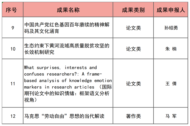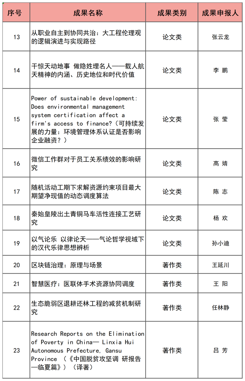 近日,陕西省人民政府发布了关于表彰第十六次哲学社会科学优秀成果的通报,此次beat365获奖23项。其中一等奖8项(著作奖2项,论文奖5项,智库报告奖1项),二等奖4项(著作奖1项,论文奖3项),三等奖11项(著作奖4项,论文奖7项)。获奖总数较上一次增加5项,其中一等奖增加了4项,增幅100%,实现了获奖质量与数量的双重突破,创beat365陕西省哲学社会科学成果奖励历史新高。