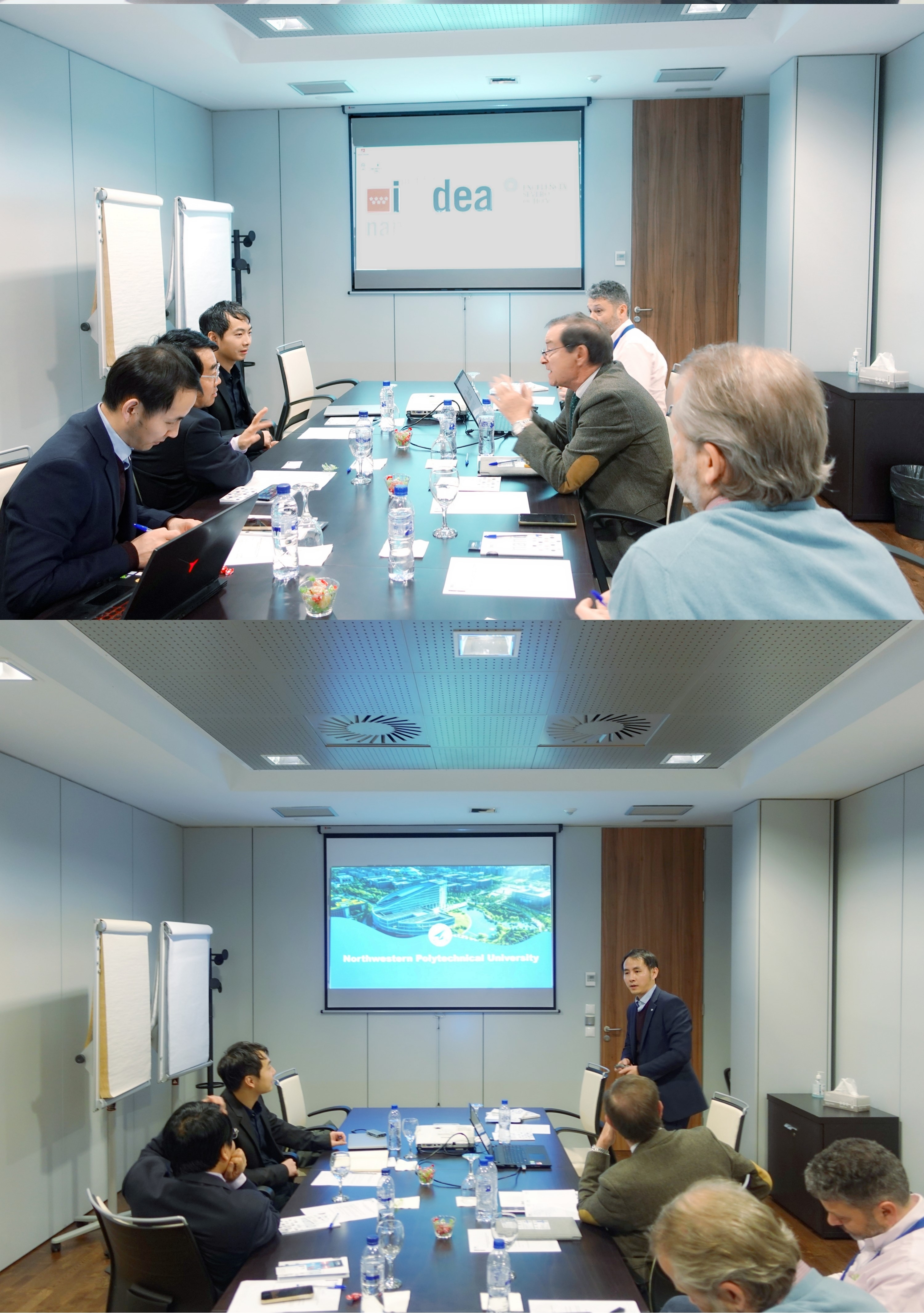 代表团首先访问了马德里高等研究院纳米科学研究所(IMDEA Nanociencia),与研究所所长Rodolfo Miranda教授和教师代表Juan Cabanillas教授、Enrique Cánovas教授等进行了座谈。Cabanillas教授对黄维院士一行的到来表示热烈欢迎,盛赞黄维院士及其团队近年来所取得的突破性成果。希望双方在长期人员互访、合作科研,已经建立良好互信的基础上,进一步强化双边交流,创新合作机制,打造共享平台,共同促进先进材料和柔性电子领域的发展。柔性电子前沿科学中心副主任刘小网教授、徐巍栋教授分别介绍了柔性电子研究院最新科研成果、合作意向和人才引进政策等。双方就先进材料、柔性电子以及纳米科技前沿领域的研究进行了深入交流,同时还就签署双边合作协议中所涉及的师生双向交流、联办寒暑学堂、人才联合培养等方面展开了热烈的讨论。双方在开展全面而深入的科研合作、人员交流和举办双边会议等方面达成了共识,均表示将尽快落实双边全面战略合作协议的签署。