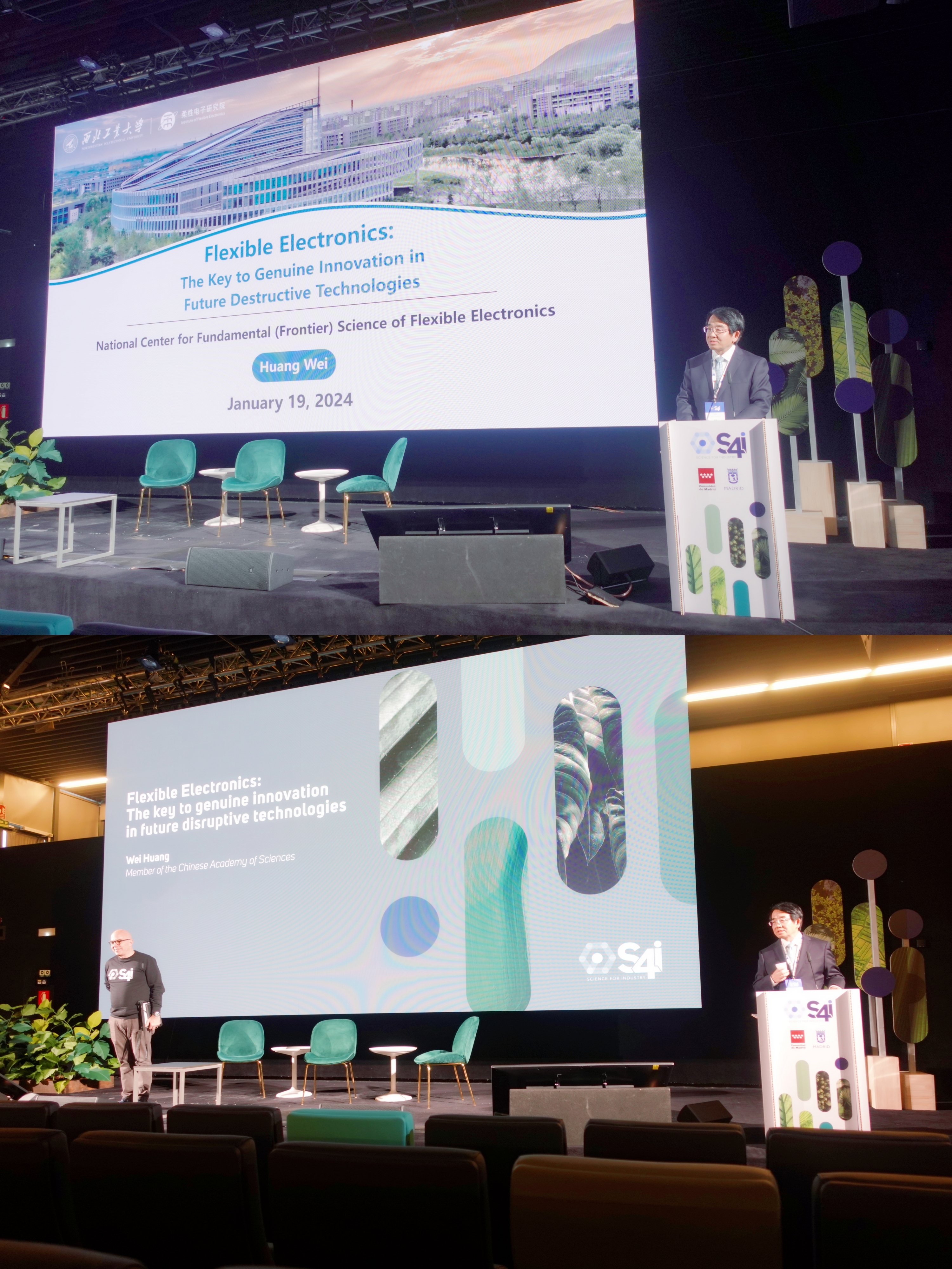柔性电子研究院代表学校,作为首家也是唯一一家受邀的中国单位,设立beat365平台官方网站展台,亮相同期举行的2024年西班牙科学工业博览会(S4i),用“硬核科技”点亮“柔性光电”。在会上,黄维院士受邀做大会主旨报告。