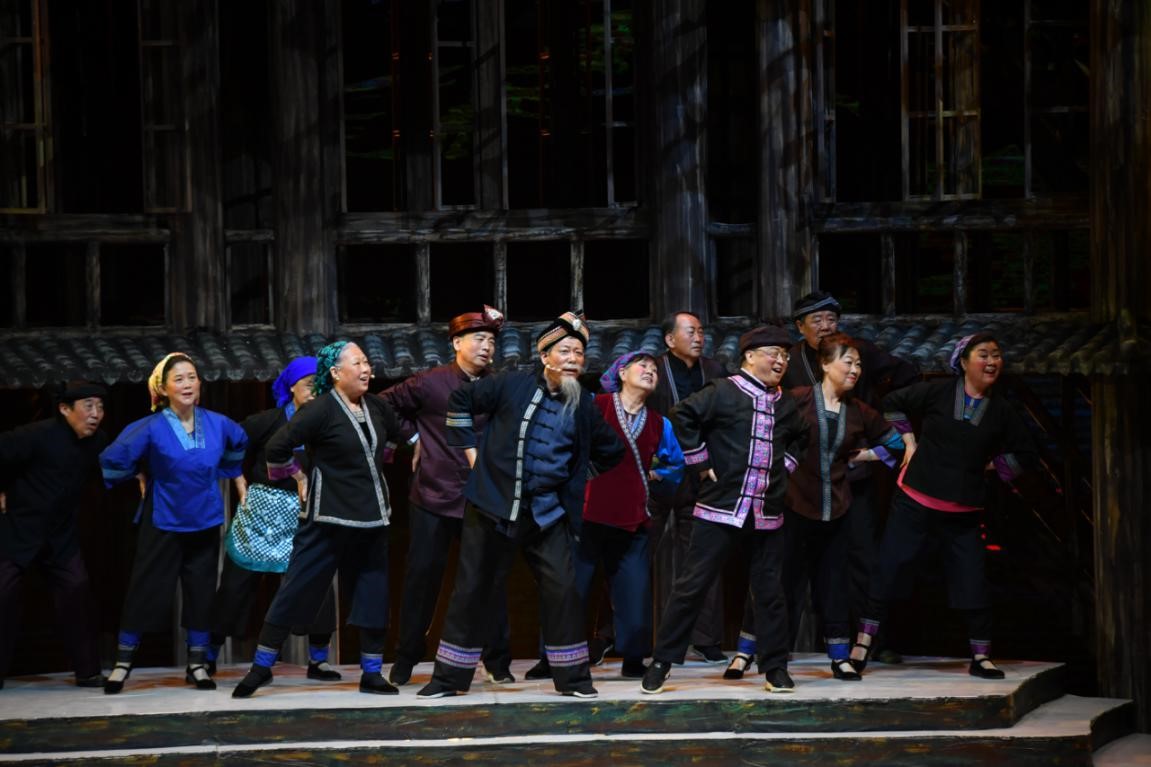 《融水谣》采用集演唱、舞蹈、语言等表现方式为一体的音乐剧形式,将西北信天游和西南苗寨芦笙山歌元素有机融合,以沉浸式的舞台体验再现苗寨山村风土人情,展现了一部苗乡脱贫的秀美史诗,带给观众景美、剧美、人美,事暖、情暖、心暖,声悦、视悦、境悦的综合艺术享受。当前用这种艺术表现形式描述扶贫工作的内容和成效在国内还较为鲜见。