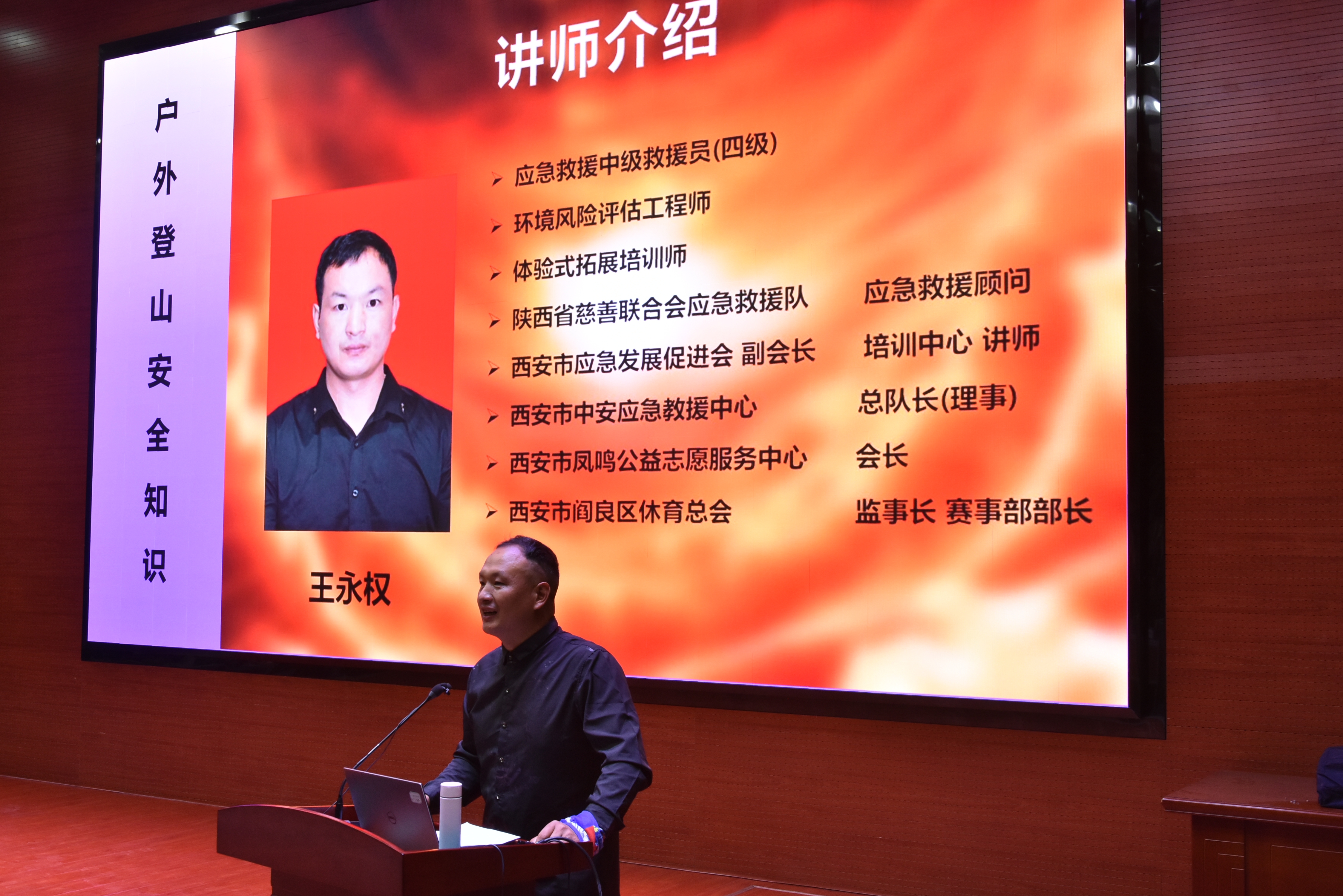 4月26日晚,党委学生工作部组织开展了学生户外安全教育专题培训会。本次培训会特别邀请了陕西省慈善联合会应急救援队应急救援顾问、西安市应急发展促进会副会长、西安市中安应急救援中心队长王永权,众诚应急救援中心队长、中国管理科学研究院应急救援讲师张增,以及陕西省红十字会应急救护培训师、众诚应急救援中心培训教官张欢来校授课。校党委副书记、副校长詹浩,党委学生工作部部长吴闻川,党委学生工作部有关人员以及各培养单位辅导员代表和学生代表400余人参加。培训会由党委学生工作部副部长曹子尧主持。