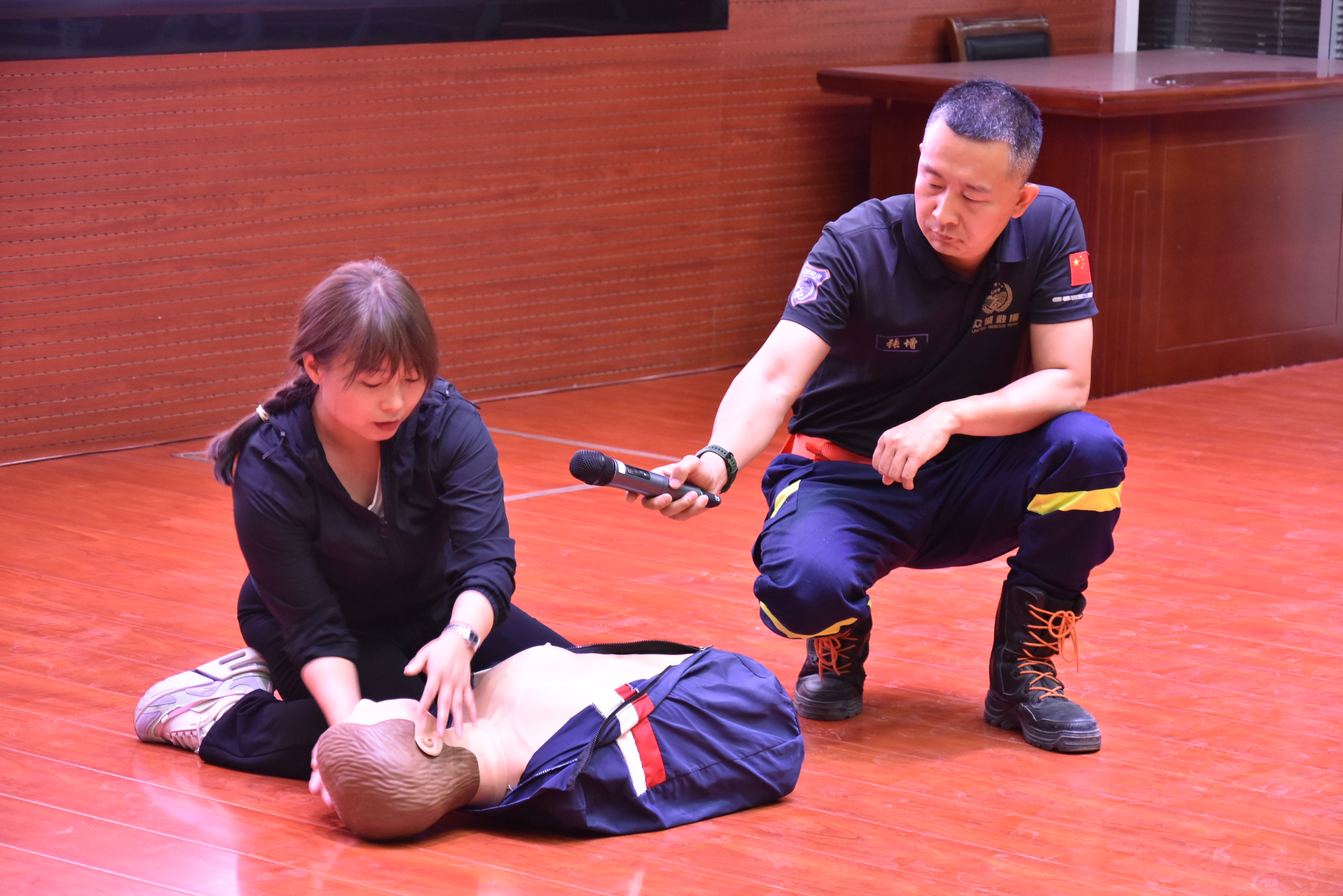 张欢老师为在场师生介绍了心肺复苏操作流程和AED使用方法,并提醒同学们留意身边AED的具体位置,以便必要时能够及时取来用于救助。
