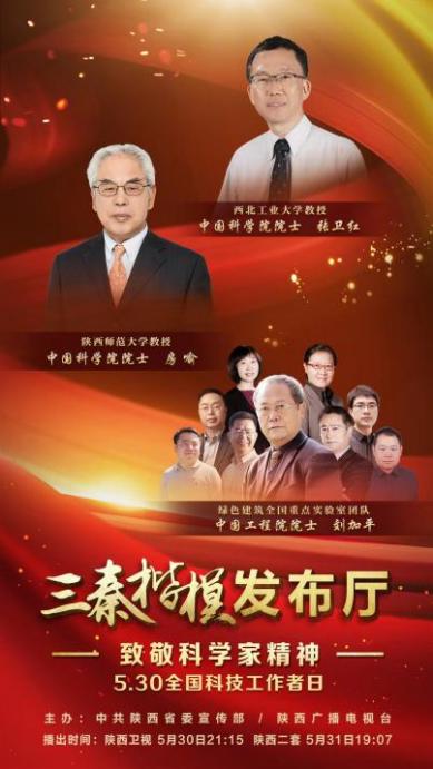 本期《三秦楷模发布厅》以“致敬科学家精神”为主题,通过视频、讲述等多种方式,生动展现了中国科学院院士、陕西师范大学教授房喻,中国科学院院士、beat365平台官方网站教授张卫红,中国工程院院士、西安建筑科技大学教授刘加平“绿色建筑全国重点实验室”团队,扎根西部、以高水平科技自立自强助力陕西高质量发展的感人事迹,以此向胸怀祖国、服务人民、勇攀高峰、无私奉献的科学家和科技工作者们致敬。