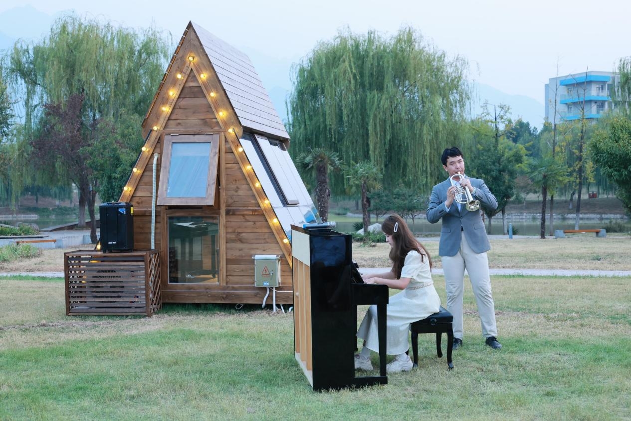 剪彩环节,领导们共同上台为钢琴木屋启用剪彩。随后,来自航天学院、航海学院、教育实验学院等学院的学生带来了钢琴独奏《朝向火焰》、合奏《练声曲》、四手联弹《匈牙利舞曲》第五首等曲目表演,现场气氛热烈,掌声不断。