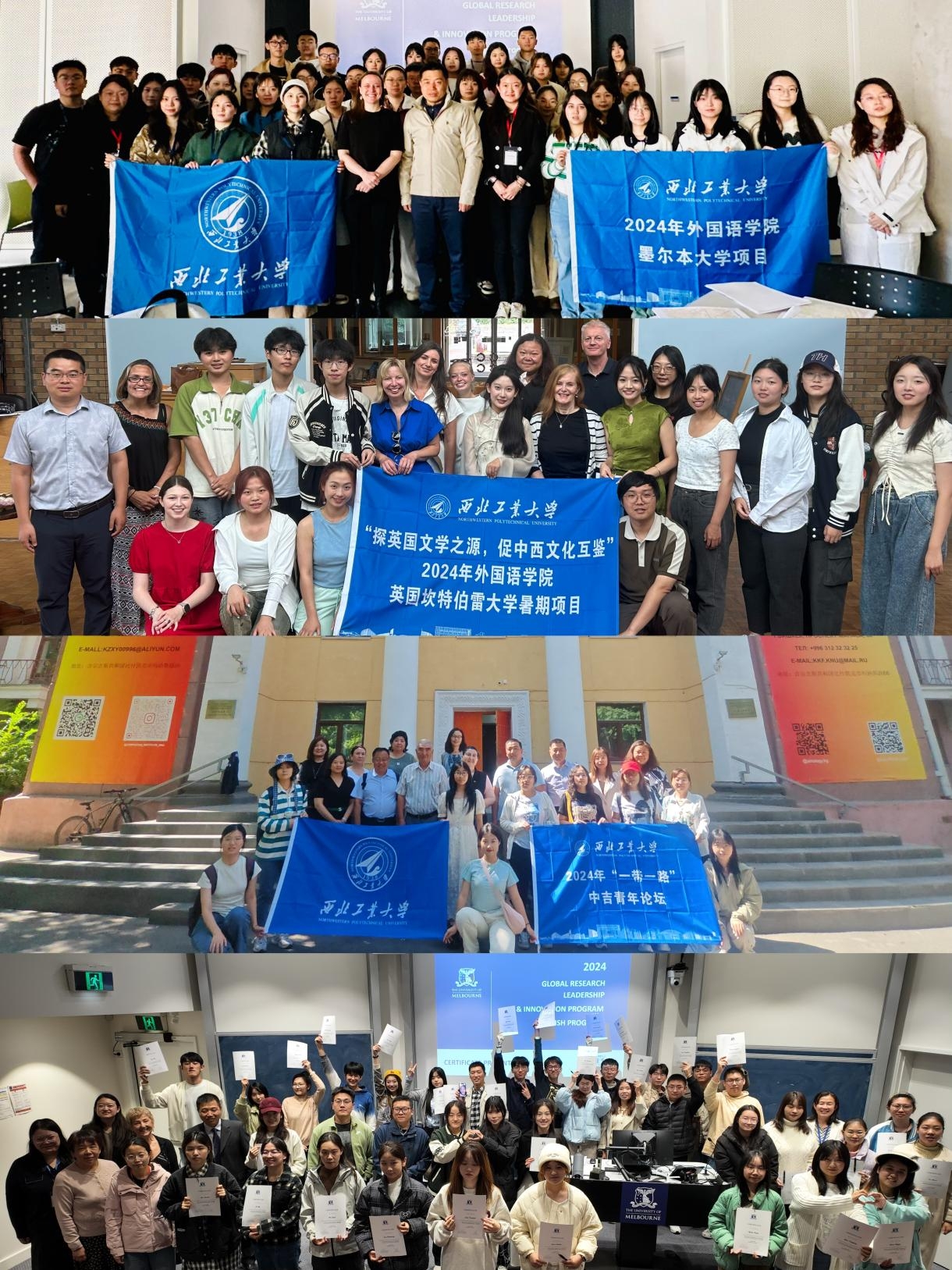 外国语学院依托翱翔四海平台,积极组织学生参与国际交流访学项目,覆盖澳大利亚、英国和吉尔吉斯斯坦的多所高校。多元文化体验,体验不同国家的教育体系和文化风情,增进对世界多元文化的理解和尊重。学术能力提升,在名校课堂上,接触外语学科的前沿研究领域和理念,提升学术素养和能力;在“一带一路”中吉青年论坛上,热情参与探讨中吉多方面合作,促进中吉青年友好交流和文化自信。语言实践锻炼,在真实外语环境中实践,提高语言应用能力和交际技巧。国际视野拓展,感受世界顶尖学府魅力,深化学术共同体国际意识,激发爱国情怀和国际责任感。以上项目既提升了学生的专业素养和国际竞争力,还为其未来职业发展奠定了坚实基础。学院将进一步加强与国际高校的合作交流,创新培养模式,培养更多具有国际视野和跨文化交流能力的优秀人才。