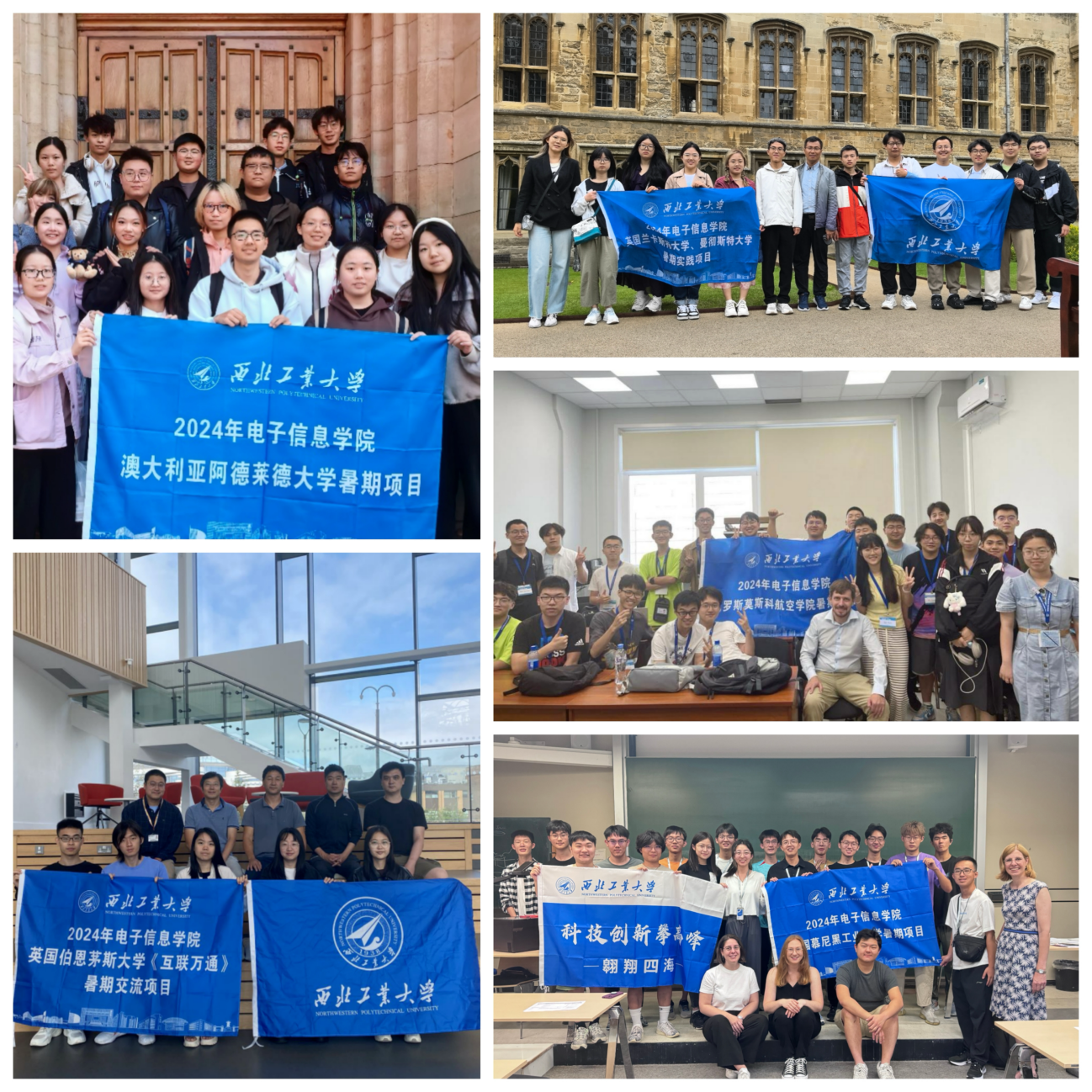以培养具有国际化视野的创新型“总师型”人才为目标,学院2024年组织安排了5个暑期出国(境)短期项目,派遣学生人数179人,分别前往英国、爱尔兰,香港特别行政区、澳门特别行政区等相关高校进行访学交流。暑期项目中剑桥、莱斯特大学项目以“强基拔尖创卓越”为主题,实践、理论、实验三位一体的研究型专业课程与英国文化、历史、科技体验相结合;澳科大、澳大项目,是科研合作助力学生培养的典范,专业知识与爱国教育相融合;高威大学项目,除专业知识学习外,沉浸式体验爱尔兰风土人情和民俗文化;香港理工大学、香港大学访学,以“专业学习 名校探索”为主题,高校讲座与院所参观相结合,感受高校学习和院所研究氛围,提高学生跨文化沟通能力与领导力,激发学生航天报国热忱。