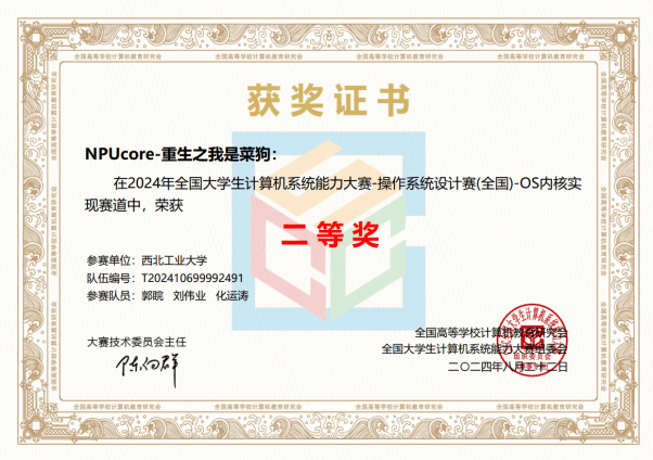 西工大“NPUcore战队”包揽全国总决赛内核实现