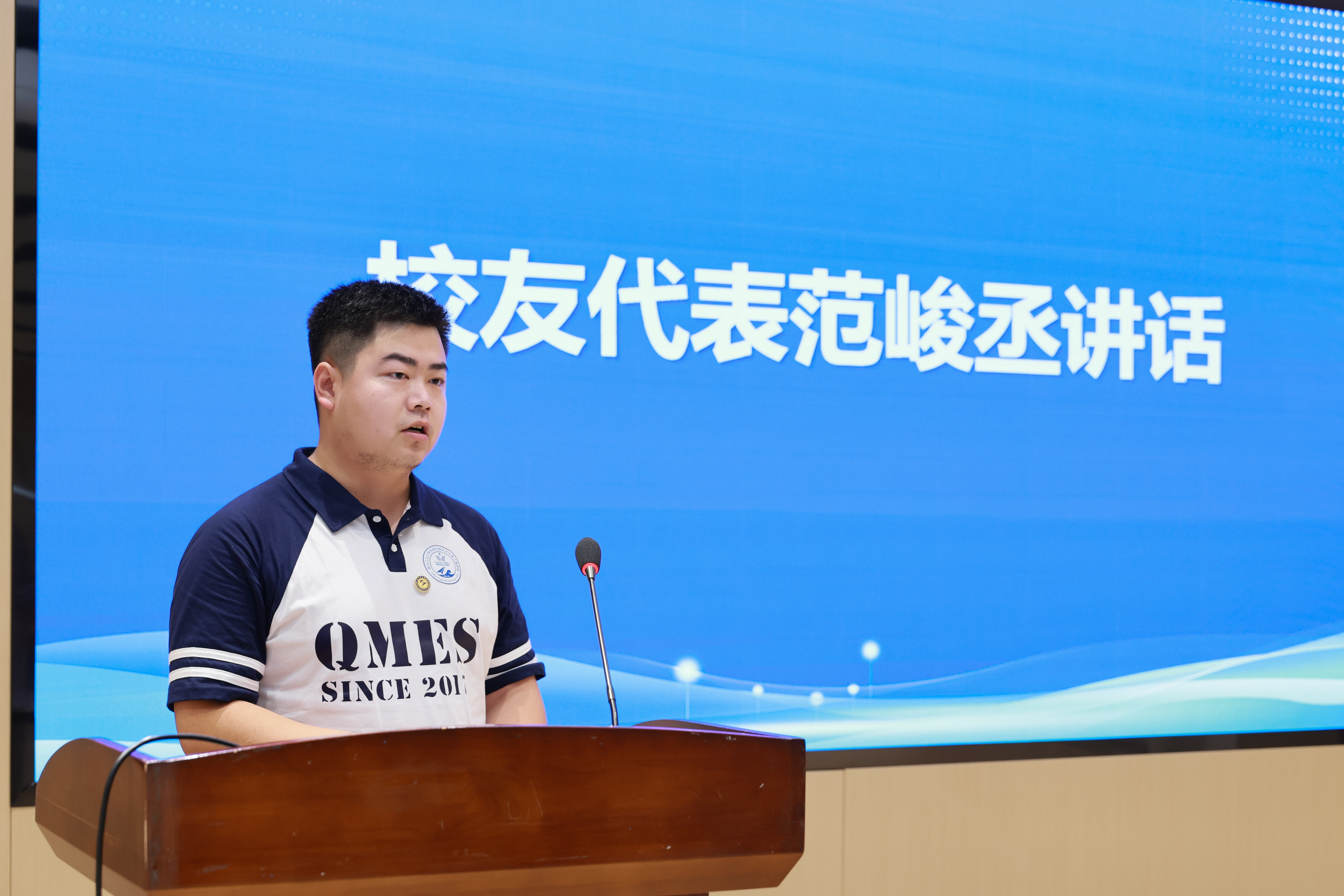 学院2017级首届毕业生、剑桥大学卡文迪许实验室博士范峻丞代表海外校友讲话。他表示,在英国留学期间深刻感受到了学院赋予的支持与帮助,校友会不仅是校友们分享经验、共享资源的平台,也是在异国他乡中找到归属感的重要纽带。