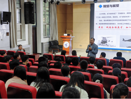 尹建峰还与同学们分享了自己的试飞经历,包括在飞行试验中遇到的挑战和解决方法,以及自己如何成长为一名特级试飞员的心路历程。他结合自己的工作实践指出,中国航空事业发展需要技术人才,更需要优秀的管理人才,要将先进的管理理念引入传统制造业,实现航空产业的高质量发展。他勉励学弟学妹们在校期间要打下扎实的理论基础,同时注重培养团队协作、组织协调、项目管理等各方面的能力,加强与学校“三航”特色优势交叉融合,未来在工作岗位上闯出自己的一片天。