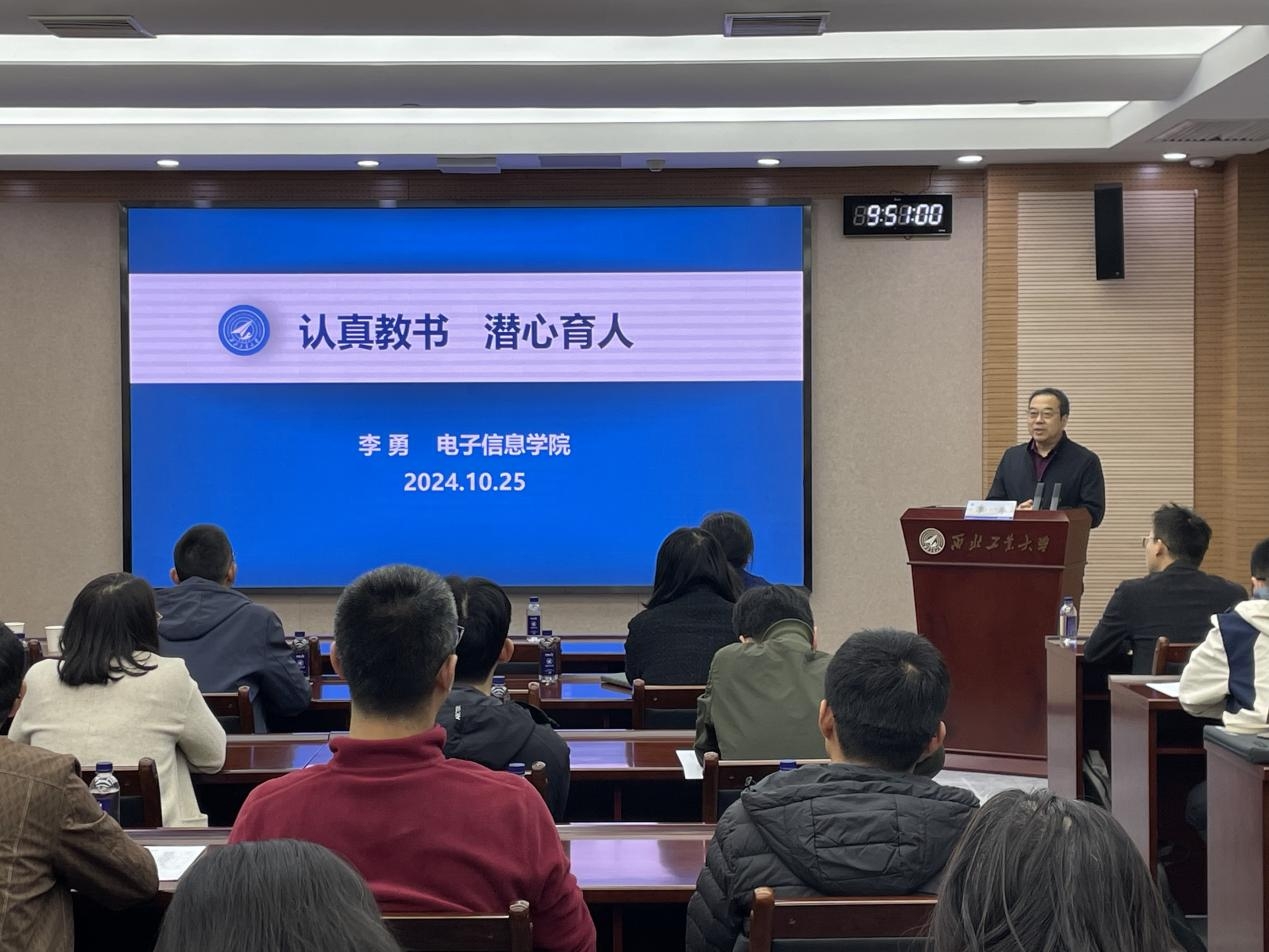 电子信息学院李勇教授结合自身教书育人四十载的经历,从教书和育人两方面诠释了“如何做一名好教师”。他强调,要认真教书不懈怠,以扎实的专业知识、有效的教学方法、正向的鼓励引导和及时的关心交流,当好学生的引路人。要潜心育人守初心,通过引导研究方向、提供科研条件、把好学术关口,提高学生的学术素养、科研能力和综合素质,促进学生全面发展、健康成长。