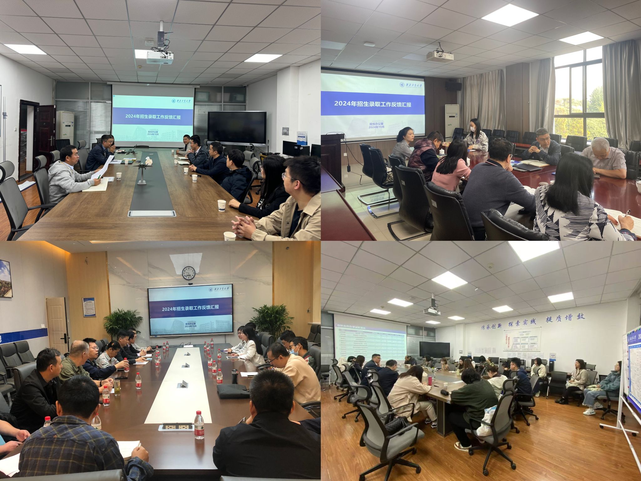 本科招生工作反馈研讨会分别由招生办公室主任王克勤、副主任马婷婷带队,赴各学院具体开展,各学院领导、招生组组长、招生组骨干教师代表等参加会议。在各反馈会上,招生办公室首先传达了校长宋保维在招生工作总结大会上对下一阶段招生工作提出的新要求,进而就学校上一轮次招生宣传工作开展情况、2024年全国及各招生组所负责省份生源质量情况和所在学院主建专业(类)录取情况进行汇报。各招生组老师均结合切身参与招生宣传工作的经验体会,在进一步深化与优质中学的合作、丰富招生宣传形式、优化计划投放及招生专业目录设置等方面提出了建议和改进措施。