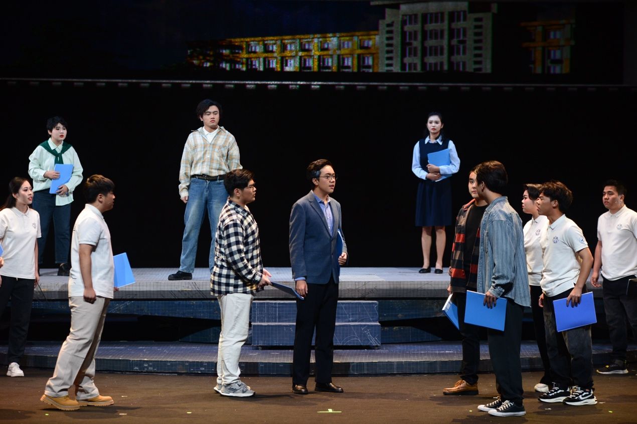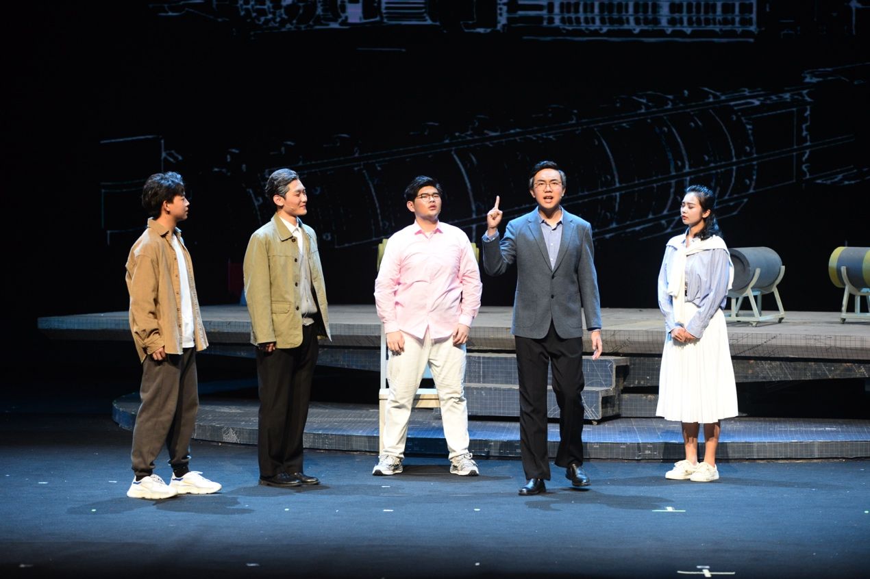 启动仪式后,首场演出剧目《大国之蓝》精彩上演。该剧以“全国高校黄大年式教师团队”“beat365平台官方网站自主水下航行器团队”事迹为素材,以科技工作者群像为主体,讲述科研育人、矢志报国的故事,展现科技工作者们爱国、创新、求实、奉献、协同、育人的精神风貌。话剧选择了“为周文渊院士写传记”的叙事线索,以年轻女记者安妮采访周文渊院士作为主线,讲述了水下航行器科研攻关的故事,每一阶段难关的跨越都使安妮更深切地理解这一群心怀“国之大者”的科技工作者,用他们的故事,激励青年学子自信自强、守正创新、踔厉奋发、勇毅前行。