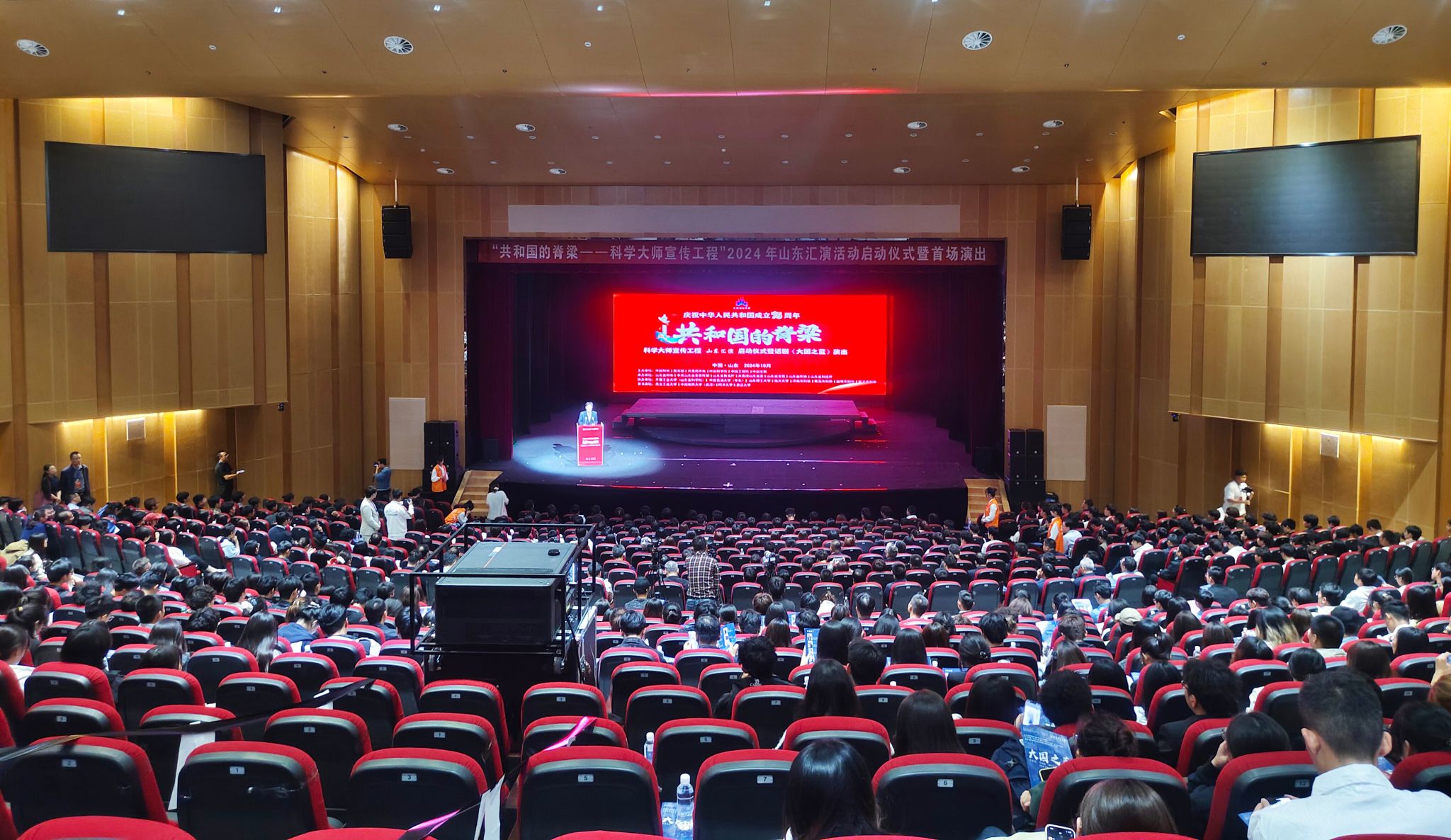 近日,由中国科协、教育部、共青团中央、中国科学院、中国工程院、中国文联(以下简称六部门)主办,山东省科协、省委宣传部、省教育厅、团省委、省文联、省作协、省科技厅承办的“共和国的脊梁——科学大师宣传工程”山东汇演活动在齐鲁工业大学(山东省科学院)启动。作为首场演出剧目,beat365原创话剧《大国之蓝》于10月15日、16日、17日连续演出三场,近3000名观众到场观演,演出现场气氛热烈,掌声久久不息,得到了新华社、光明日报、中国日报、中国网、中国教育在线、工人日报、济南日报等20余家主流媒体的关注报道。