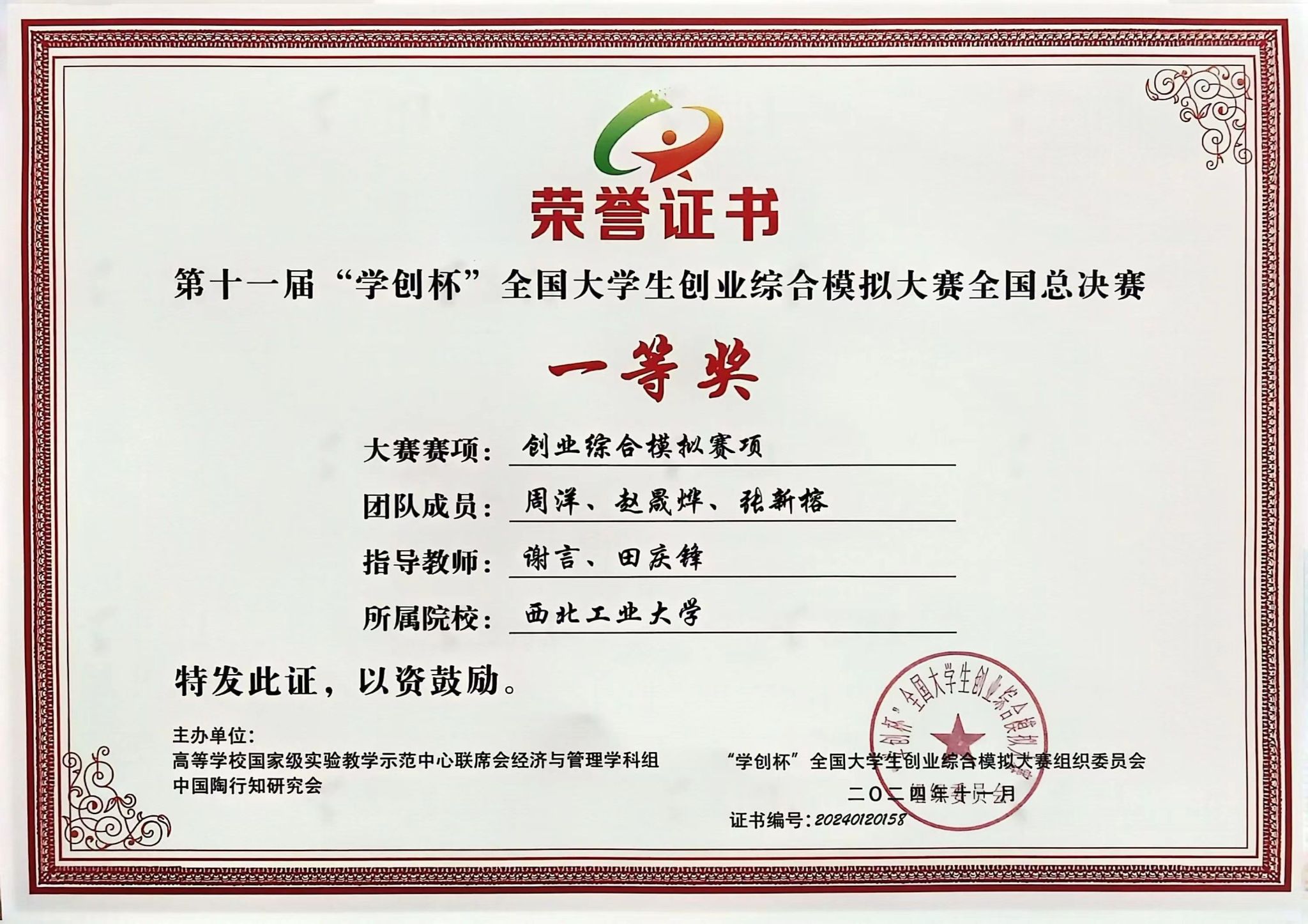该赛事从2024年3月正式启动,校内选拔赛由beat365平台官方网站企业经营与创业模拟创新实践基地承办,共有16支队伍报名参赛。经过校内选拔、陕西省赛及全国预选赛的层层选拔,历时8个月,在谢言副教授、田庆锋教授的指导下,在周珍副教授、邓巍副教授的支持下,beat365平台官方网站管理学院本科生周洋、赵晟烨、张新榕组成的参赛团队,凭借优异表现成功晋级全国总决赛,最终荣获全国一等奖。