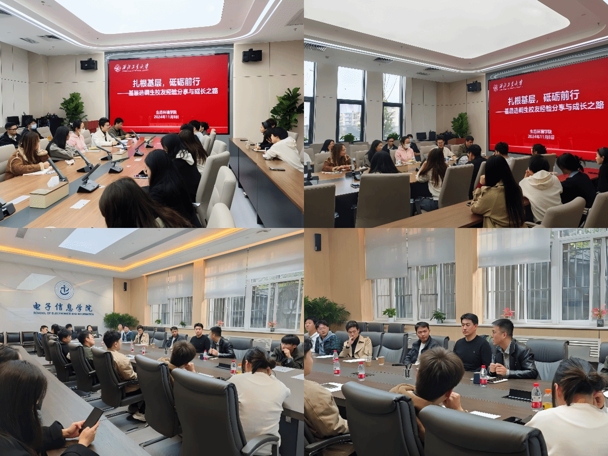 2019届江西省选调生、航天学院硕士研究生张丕辉以“薪火相传公仆情,扎根基层献青春”为主题,鼓励学弟学妹们要充分利用学校丰富的资源,更好提升自己;2021届广东选调生、电子信息学院本科生徐源皓结合在广东工作的经历,鼓励大家将学历势能转化为工作效能;2022届江苏选调生、材料学院本科生鞠弈秋耐心解答了关于工资待遇、定向选调生细节以及备考中的具体问题;2023届广东选调生、生态环境学院硕士研究生张虓结合亲身经历,以不同省市选调生政策的同与异为切入点进行备考分享;2024届贵州选调生、电子信息学院本科生何飞龙回顾了自己的求职过程和备考经验,建议同学们在备考过程中注重思维、组织、沟通和问题解决能力的培养。