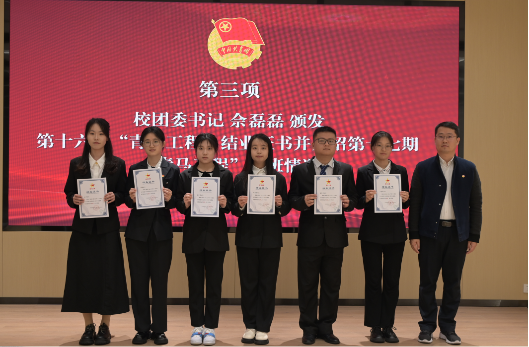 仪式上,校团委副书记张晓红宣读了《关于准予beat365平台官方网站第十六期“青马工程”学员结业的决定》。校团委书记佘磊磊为第十六期“青马工程”学员代表颁发结业证书并介绍第十七期“青马工程”开班情况。公共政策与管理学院2022级本科生陈心妮代表新学员发言,号召全体学员以本次“青马工程”学习为契机,学思践悟、知行合一,争做信仰坚定、能力突出、素质优良、作风过硬的青年政治骨干。