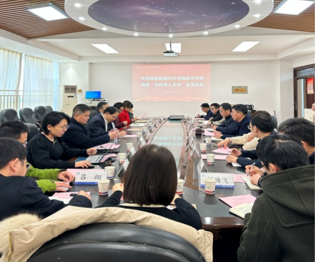 为贯彻落实党的二十届三中全会、全国教育大会和学校第十四次党代会精神,全面推动“总师育人文化”走深走实。11月25日下午,副校长杨益新带领教务部一行到航天学院调研“总师育人文化”走深走实。教务部部长王海鹏,副部长张学良、孙中奎以及相关同志陪同,航天学院院长黄攀峰、副院长孟中杰、院长助理、实践教学中心主任、教学督导、课程群负责人、专业建设负责人以及学院教学办同志参加了会议,会议由学院院长黄攀峰主持。