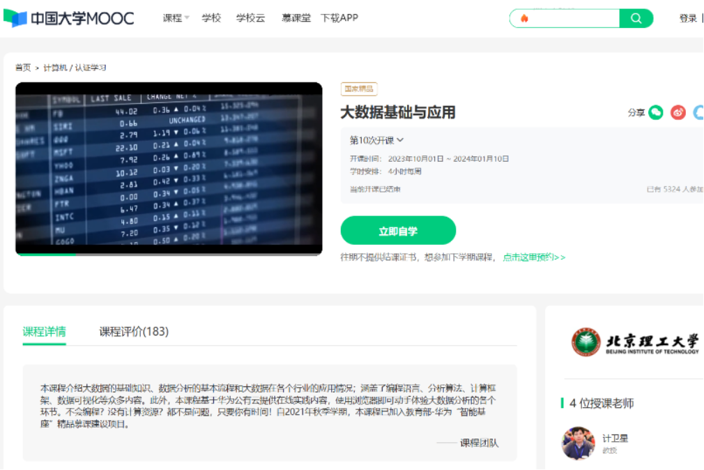 https://www.icourse163.org/course/BIT-1470418179 ;https://www.xuetangx.com/course/bit0809bt0186