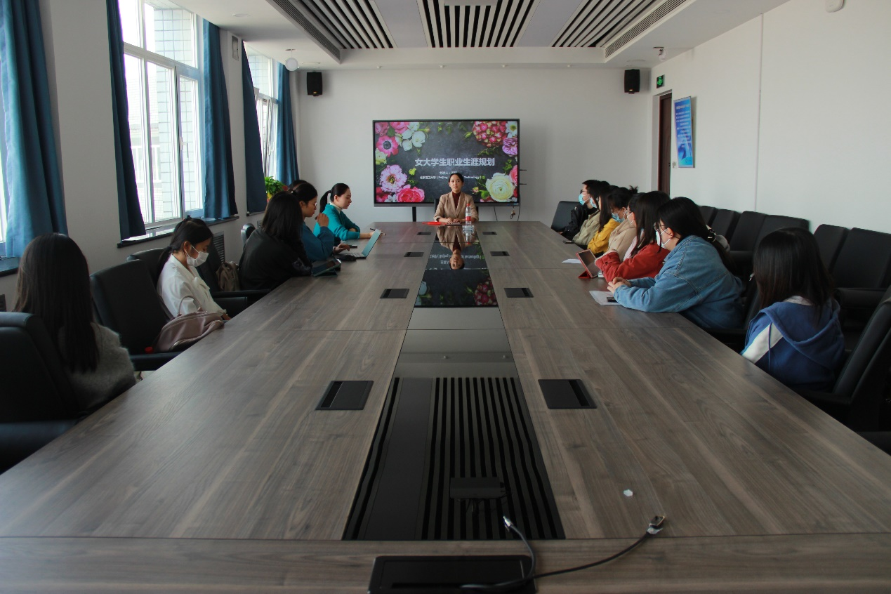 田静从女性职场升迁、薪资、学历、家庭等问题对就业的影响谈起,针对女性职业生涯发展规划这一主题开展了讲座。讲座中,田静结合职场中女性在认知、语言、情绪、记忆、学习等方面的特点,从职场女性的社会地位、发展前景、稳定性、经济报酬等方面集中进行分享。同时,她重点讲解了女性在求职上会出现的难题,让在座的同学们对女性职业规划有了更加清晰的认识和理解。
