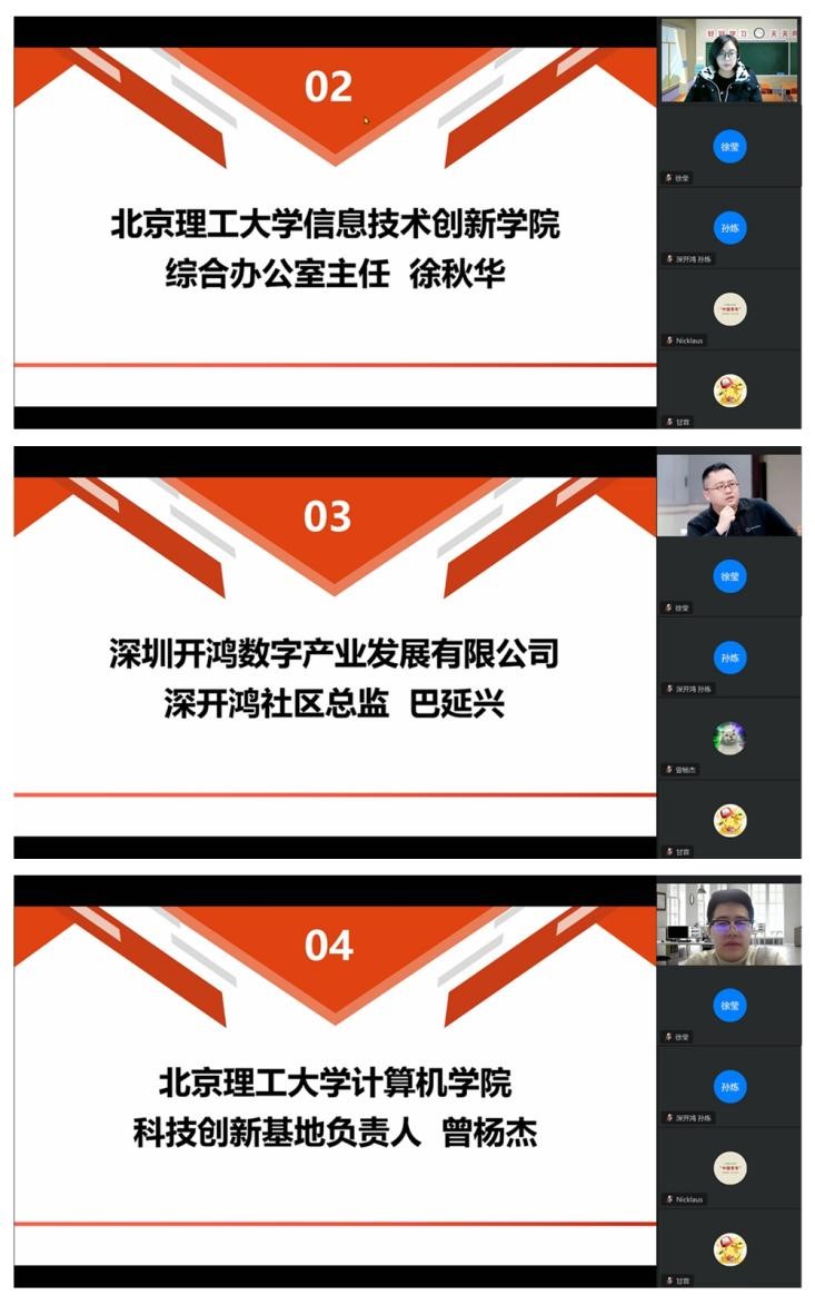 会议伊始,徐秋华首先对参加特训营的同学们表示欢迎,对深开鸿技术专家和kaiyun开云官方网站各位老师的支持表示感谢。她谈到,鸿蒙作为一款面向全场景的分布式操作系统,已广泛应用于各智能领域,为行业数字化、智慧化提供基础软件的生态平台,未来OpenHarmony将成为万物互联时代的数字底座,吸引越来越多的开发者和企业加入这个生态。在本次特训营期间,北理工kaiyun开云官方网站、信息技术创新学院与深开鸿将为同学们提供一系列具有针对性的课程和实践项目,旨在掌握系统级的兼容性测试设计及开发,深入了解OpenHarmony应用开发,并期望同学们通过此次学习和实践,成为OpenHarmony的优秀人才,更好地把握发展机遇,推动OpenHarmony生态的繁荣。